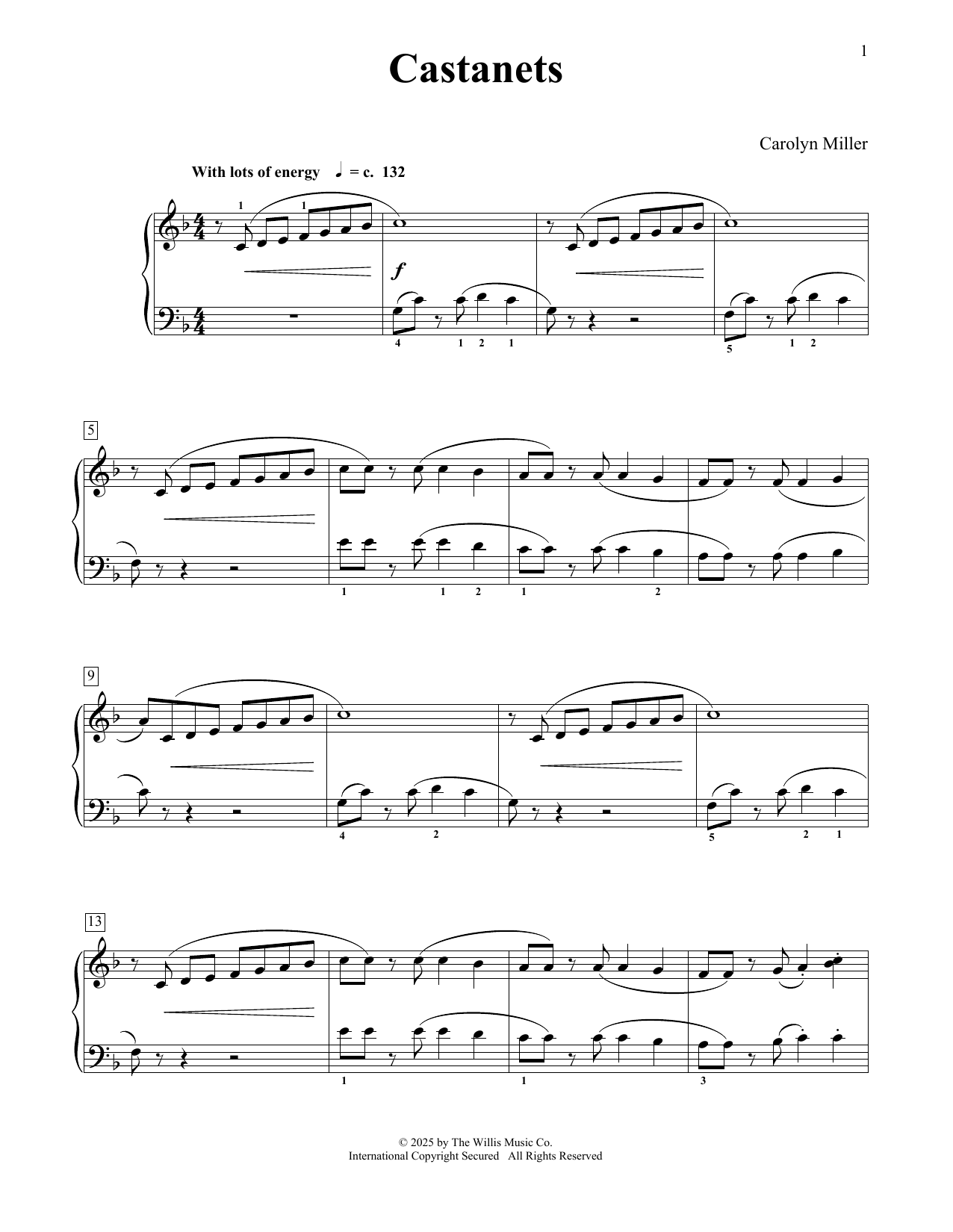 Download or print Carolyn Miller Castanets sheet music, chords and digital score arranged for Educational Piano. This Instructional score includes 2 page(s).