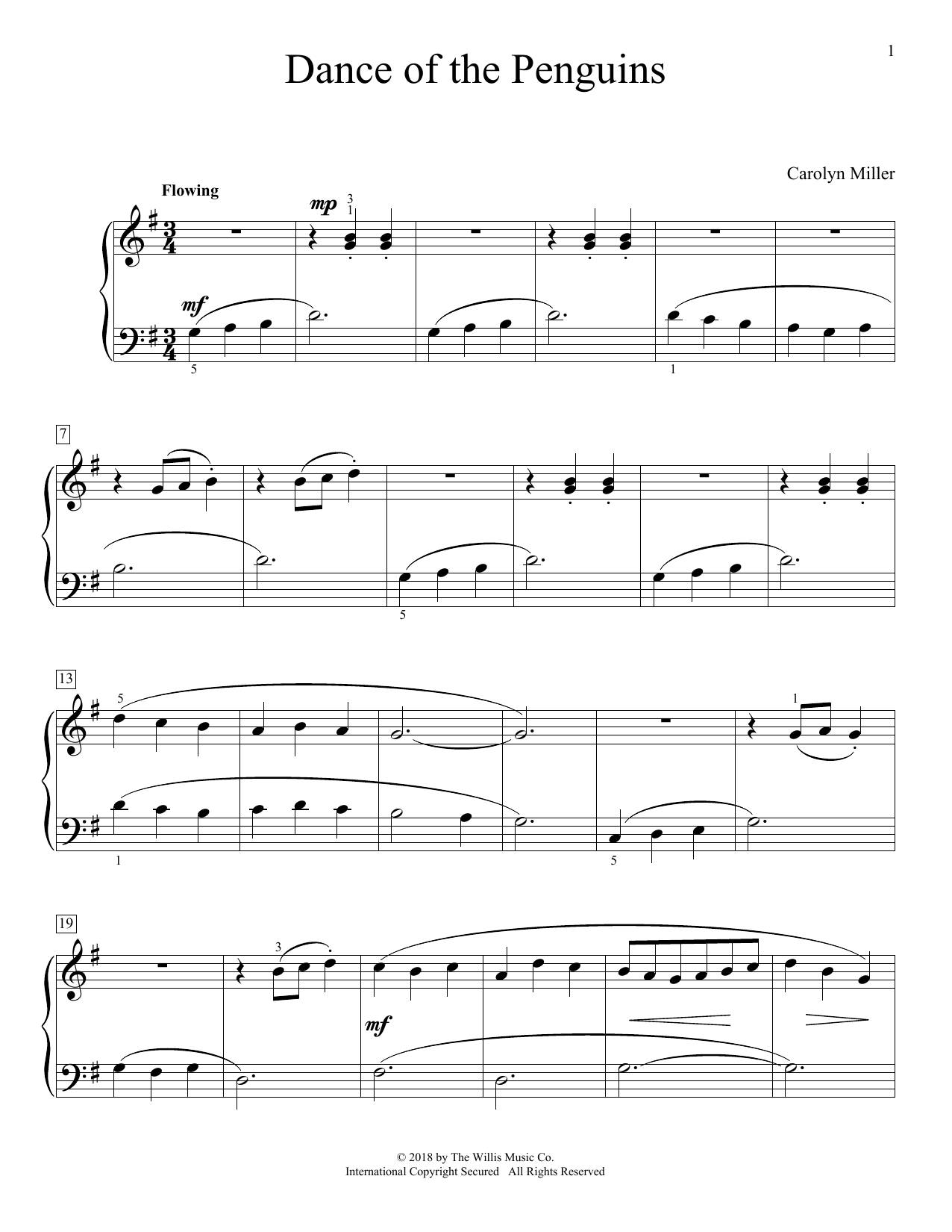 Download or print Carolyn Miller Dance Of The Penguins sheet music, chords and digital score arranged for Educational Piano. This Children score includes 2 page(s).