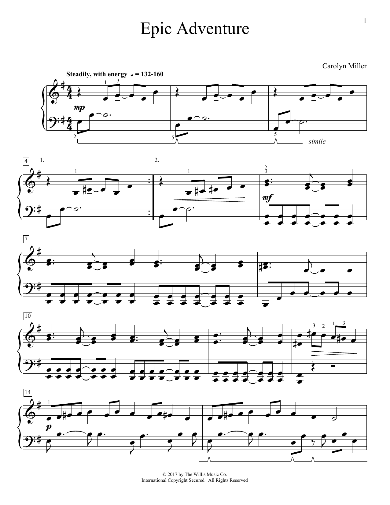 Download or print Carolyn Miller Epic Adventure sheet music, chords and digital score arranged for Educational Piano. This Instructional score includes 2 page(s).