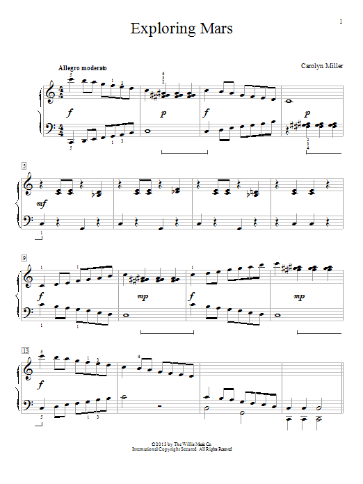 Download or print Carolyn Miller Exploring Mars sheet music, chords and digital score arranged for Educational Piano. This Classical score includes 3 page(s).