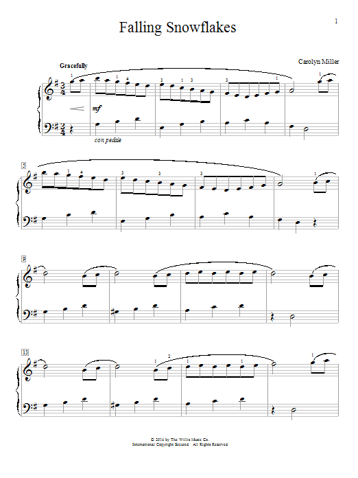 Download or print Carolyn Miller Falling Snowflakes sheet music, chords and digital score arranged for Educational Piano. This Pop score includes 3 page(s).