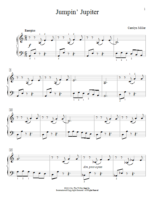 Download or print Carolyn Miller Jumpin' Jupiter sheet music, chords and digital score arranged for Educational Piano. This Classical score includes 3 page(s).