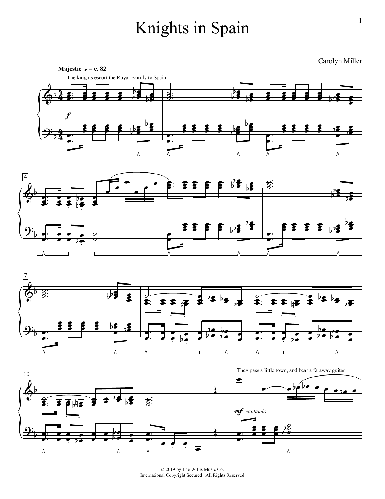 Download or print Carolyn Miller Knights In Spain sheet music, chords and digital score arranged for Educational Piano. This Instructional score includes 3 page(s).
