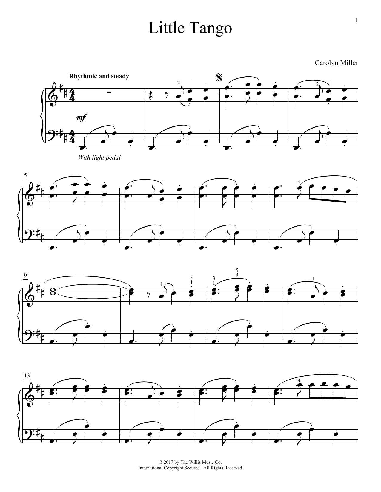 Download or print Carolyn Miller Little Tango sheet music, chords and digital score arranged for Educational Piano. This Instructional score includes 3 page(s).