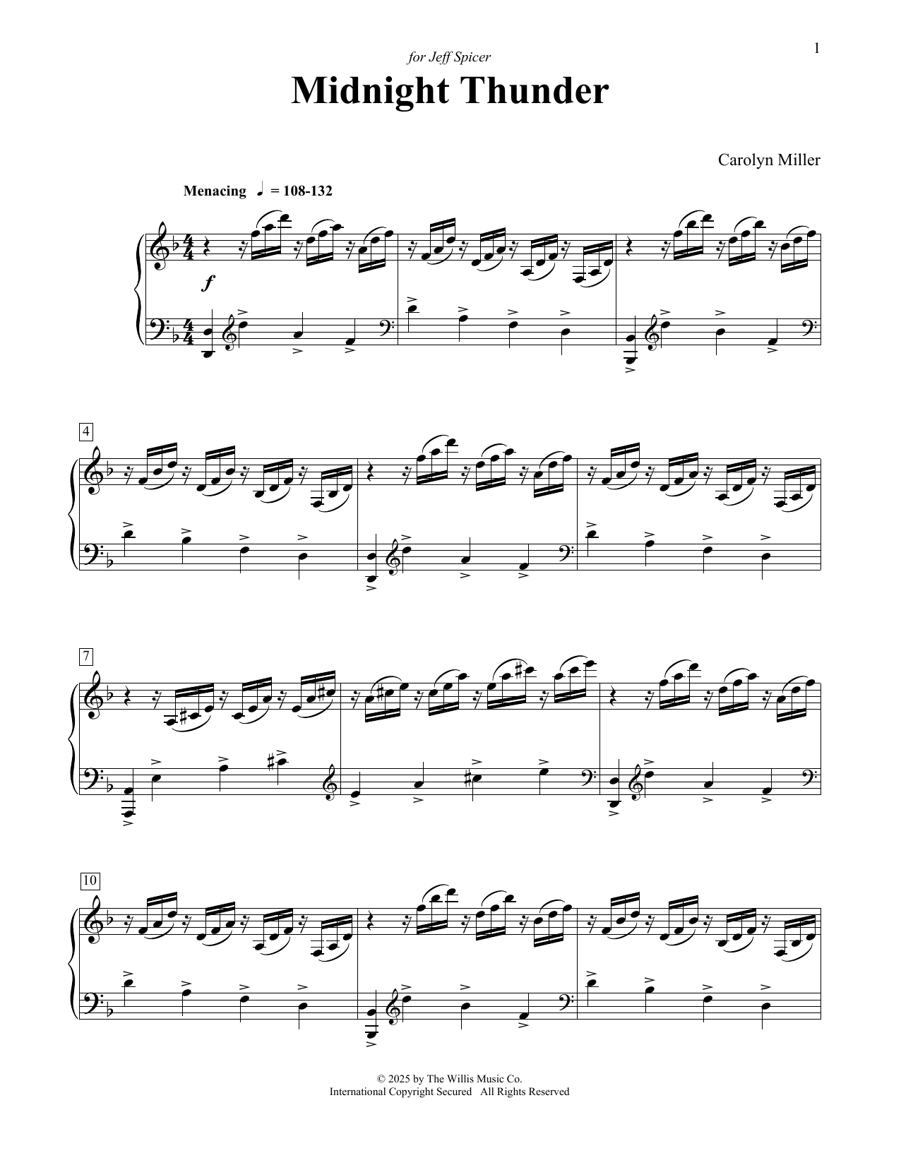 Download or print Carolyn Miller Midnight Thunder sheet music, chords and digital score arranged for Educational Piano. This Instructional score includes 4 page(s).
