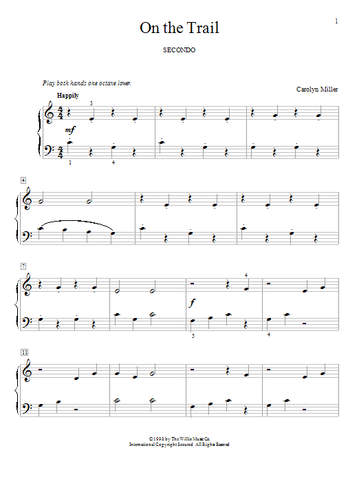 Download or print Carolyn Miller On The Trail sheet music, chords and digital score arranged for Piano Duet. This Contest score includes 4 page(s).