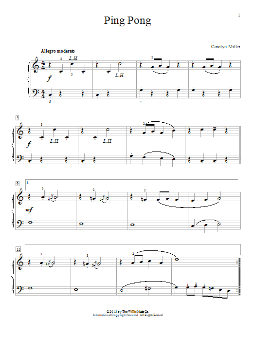 Download or print Carolyn Miller Ping Pong sheet music, chords and digital score arranged for Educational Piano. This Classical score includes 2 page(s).