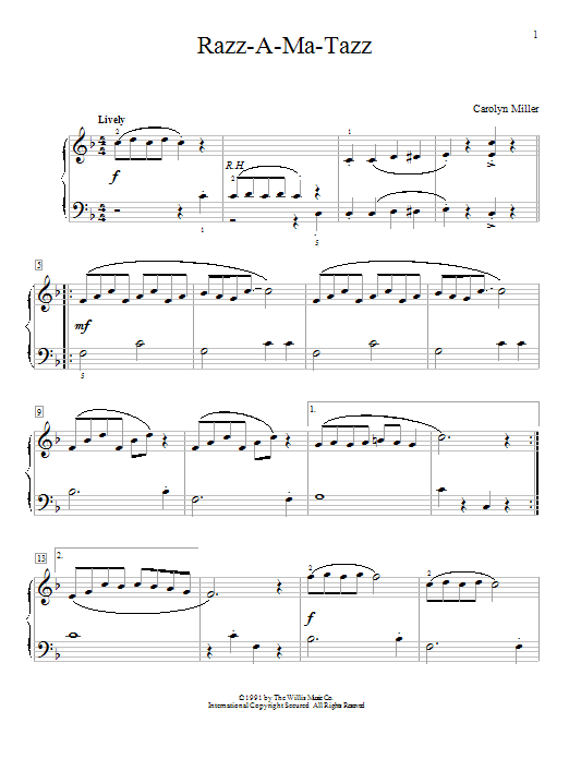 Download or print Carolyn Miller Razz-A-Ma-Tazz sheet music, chords and digital score arranged for Educational Piano. This Classical score includes 3 page(s).