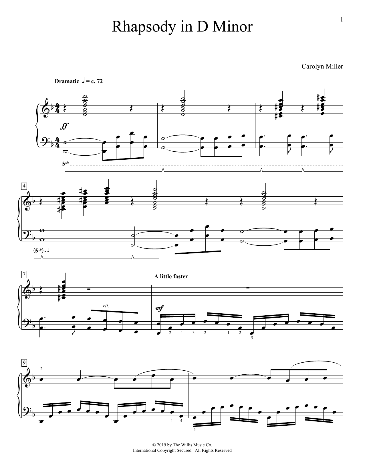 Download or print Carolyn Miller Rhapsody In D Minor sheet music, chords and digital score arranged for Educational Piano. This Instructional score includes 6 page(s).