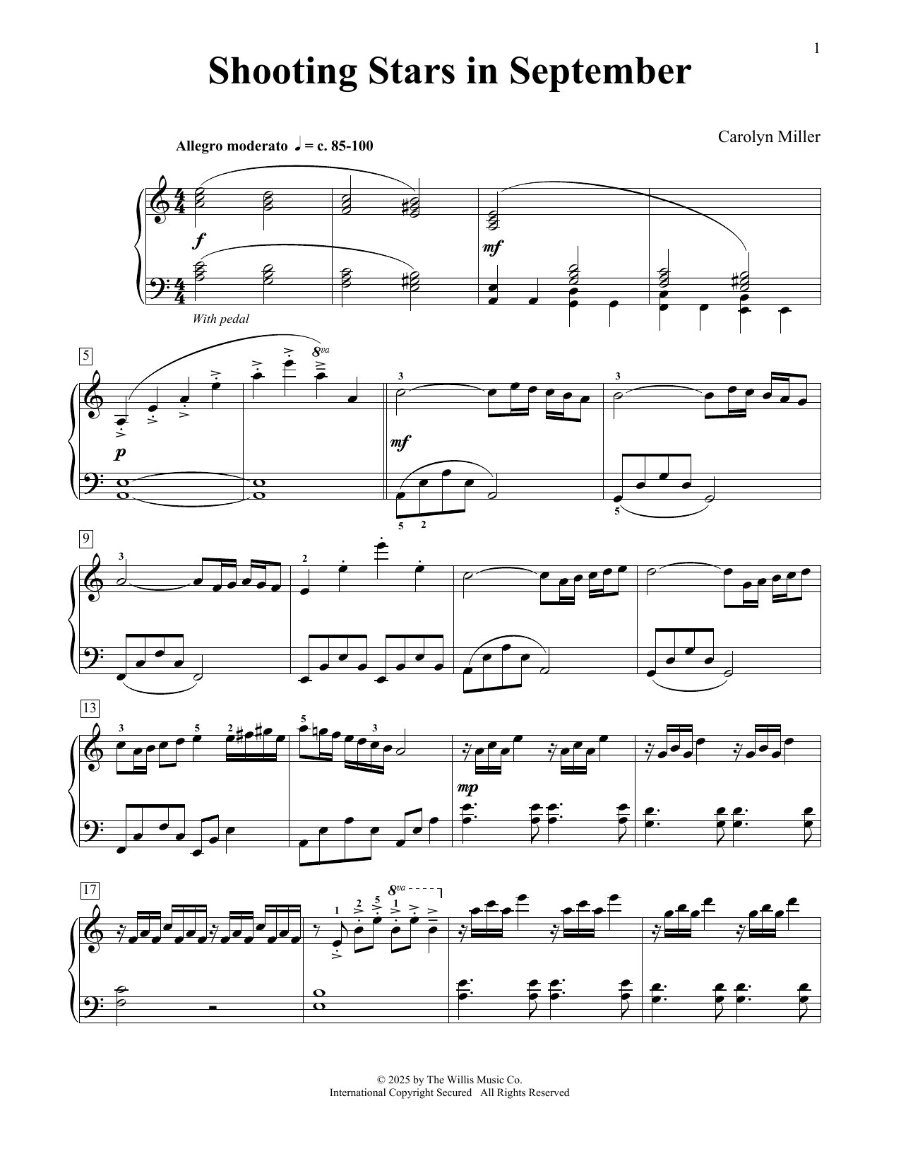 Download or print Carolyn Miller Shooting Stars In September sheet music, chords and digital score arranged for Educational Piano. This Instructional score includes 2 page(s).