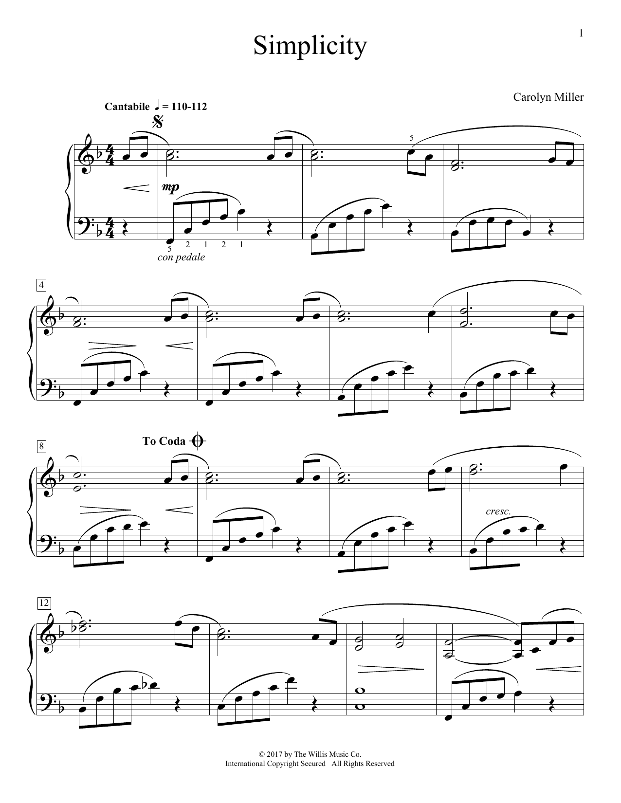 Download or print Carolyn Miller Simplicity sheet music, chords and digital score arranged for Educational Piano. This Instructional score includes 2 page(s).