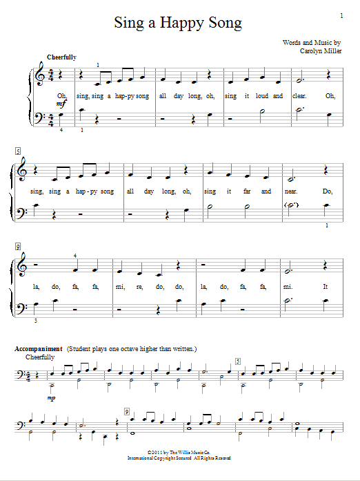 Download or print Carolyn Miller Sing A Happy Song sheet music, chords and digital score arranged for Educational Piano. This Children score includes 2 page(s).