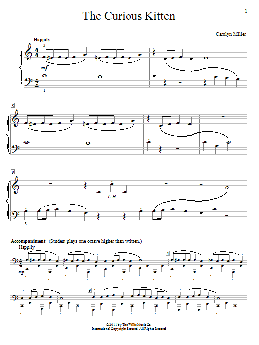 Download or print Carolyn Miller The Curious Kitten sheet music, chords and digital score arranged for Educational Piano. This Children score includes 2 page(s).
