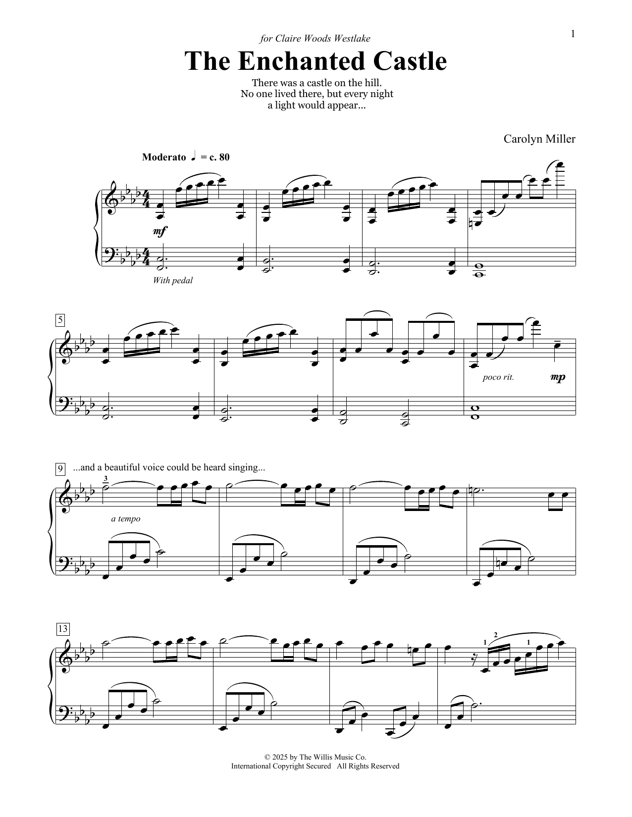 Download or print Carolyn Miller The Enchanted Castle sheet music, chords and digital score arranged for Educational Piano. This Instructional score includes 4 page(s).