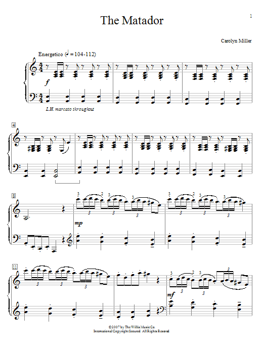 Download or print Carolyn Miller The Matador sheet music, chords and digital score arranged for Educational Piano. This Children score includes 3 page(s).