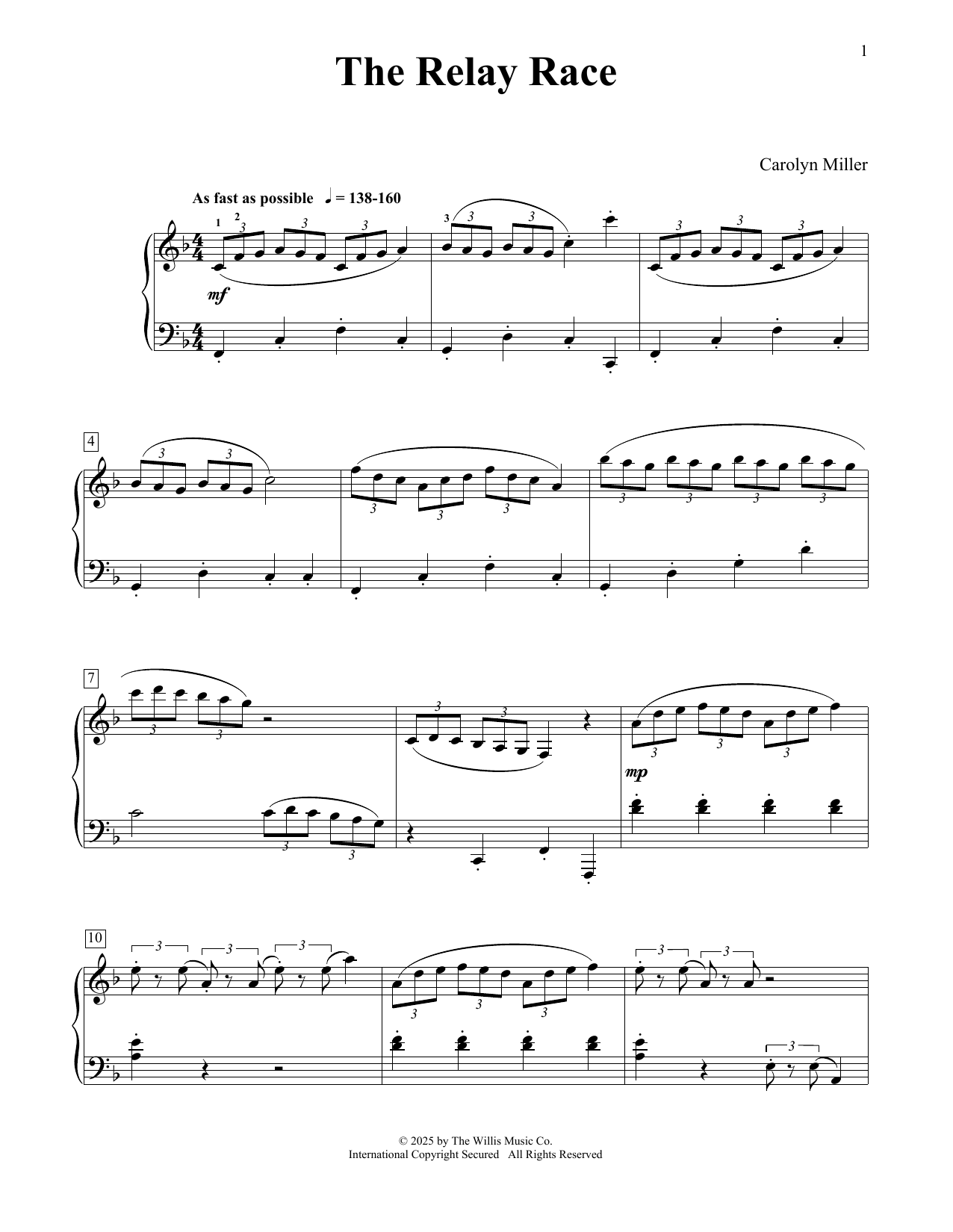 Download or print Carolyn Miller The Relay Race sheet music, chords and digital score arranged for Educational Piano. This Instructional score includes 2 page(s).