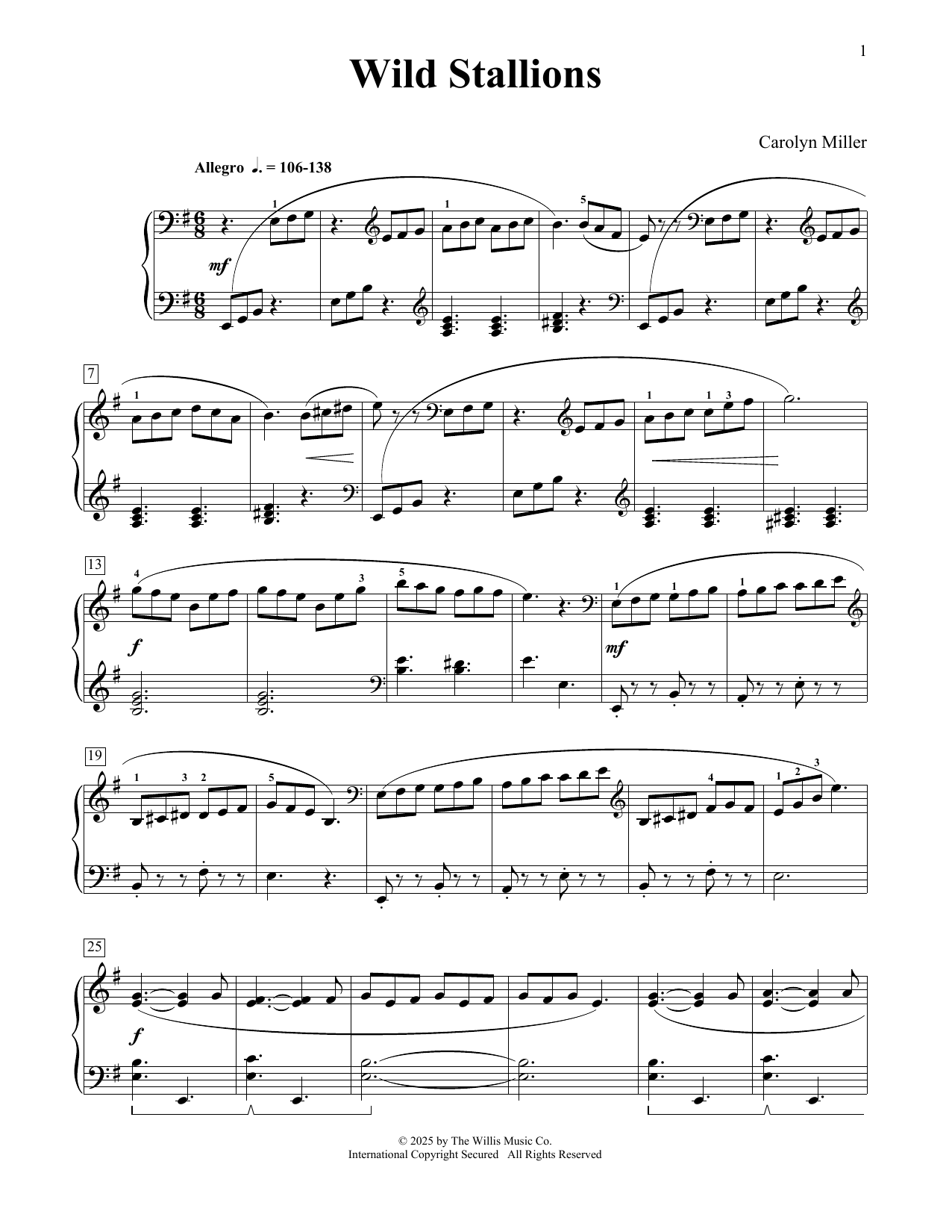 Download or print Carolyn Miller Wild Stallions sheet music, chords and digital score arranged for Educational Piano. This Instructional score includes 2 page(s).