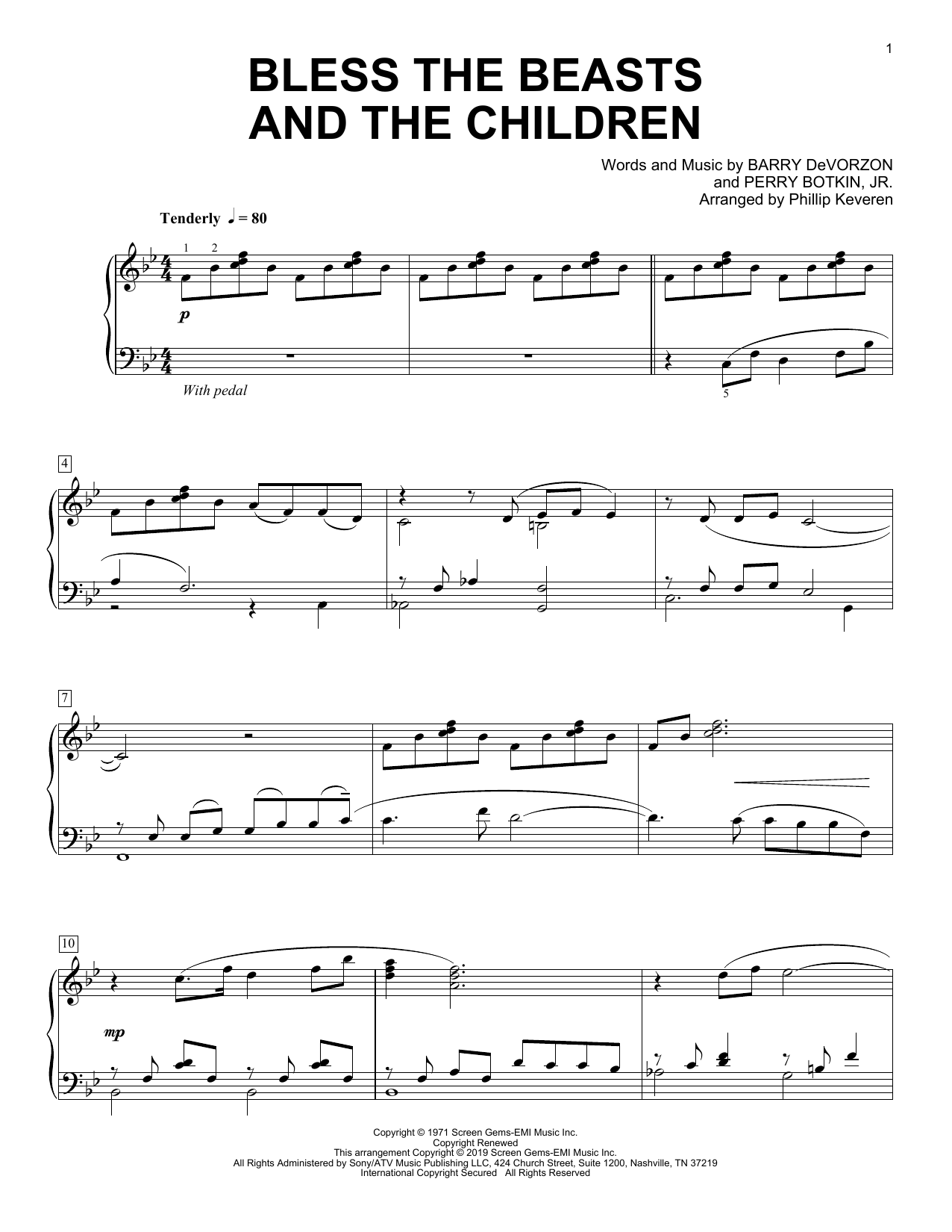 Quick facts Bless The Beasts And Children (arr. Phillip Keveren) about digital sheet music