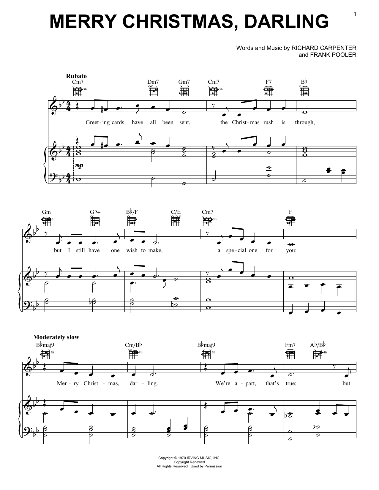 Quick facts Merry Christmas, Darling about digital sheet music