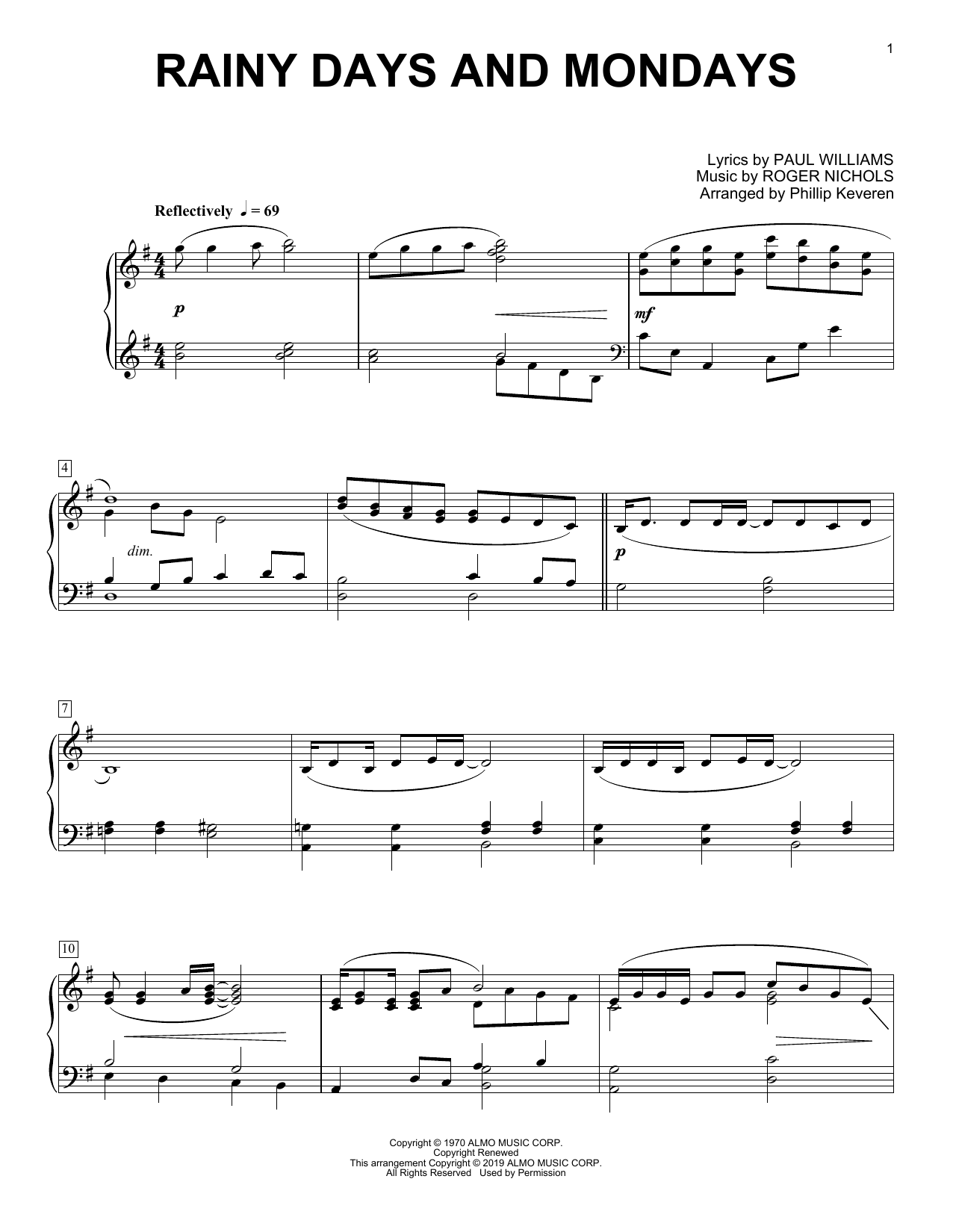 Quick facts Rainy Days And Mondays (arr. Phillip Keveren) about digital sheet music