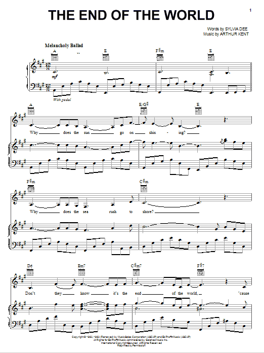 Quick facts The End Of The World about digital sheet music