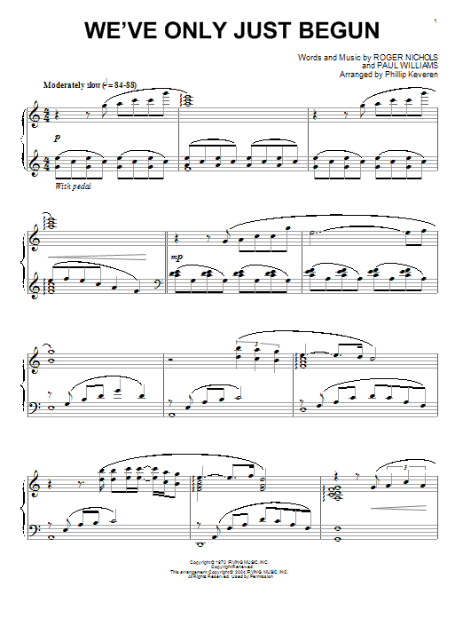 Download or print Carpenters We've Only Just Begun (arr. Phillip Keveren) sheet music, chords and digital score arranged for Piano Solo. This Love score includes 4 page(s).