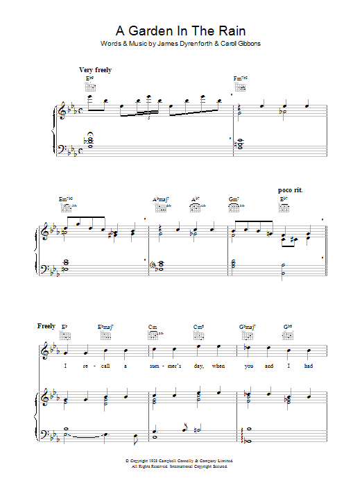 Download or print Carroll Gibbons A Garden In The Rain sheet music, chords and digital score arranged for Piano, Vocal & Guitar Chords. This Jazz score includes 5 page(s).