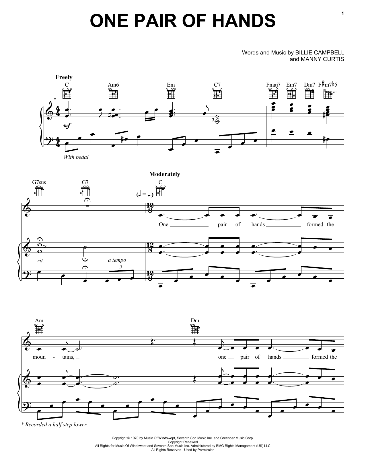 Download or print Carroll Roberson One Pair Of Hands sheet music, chords and digital score arranged for Piano, Vocal & Guitar Chords (Right-Hand Melody). This Gospel score includes 6 page(s).