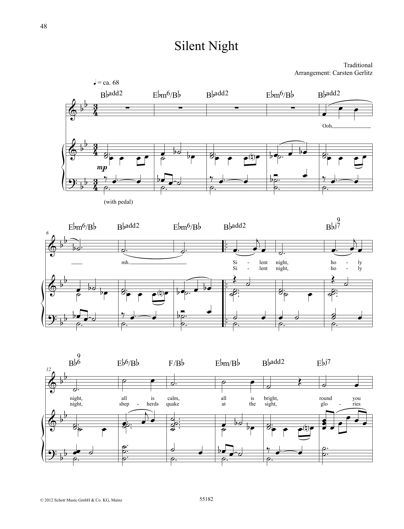 Download or print Carsten Gerlitz Silent Night sheet music, chords and digital score arranged for Piano & Vocal. This Christmas score includes 3 page(s).