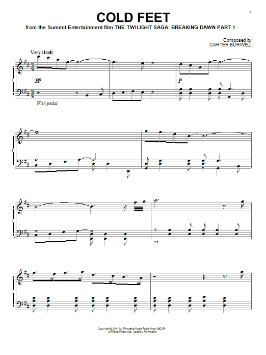 Download or print Carter Burwell Cold Feet sheet music, chords and digital score arranged for Piano Solo. This Film/TV score includes 3 page(s).