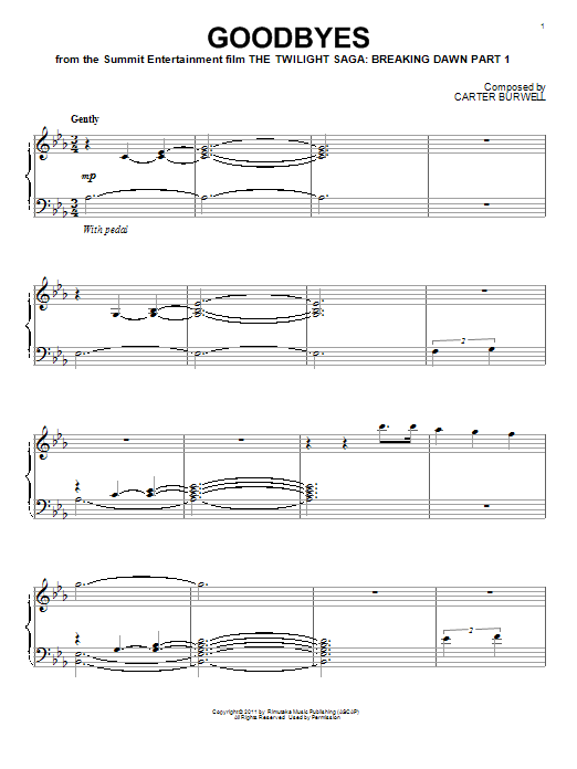 Download or print Carter Burwell Goodbyes sheet music, chords and digital score arranged for Piano Solo. This Film/TV score includes 4 page(s).