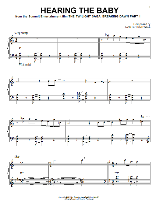 Download or print Carter Burwell Hearing The Baby sheet music, chords and digital score arranged for Piano Solo. This Film/TV score includes 2 page(s).