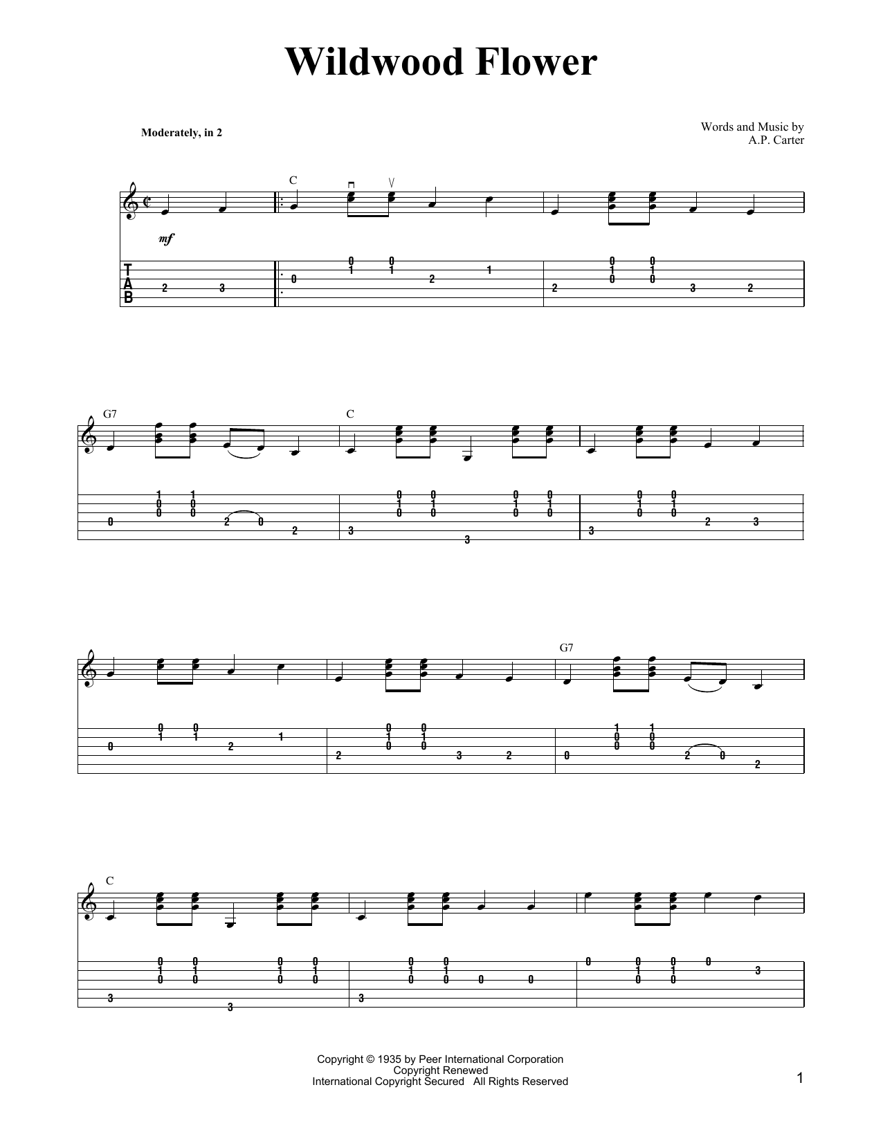Download or print Carter Style Guitar Wildwood Flower sheet music, chords and digital score arranged for Solo Guitar. This Country score includes 2 page(s).
