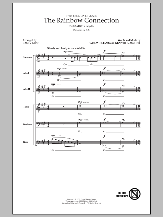 Download or print Casey Kidd The Rainbow Connection sheet music, chords and digital score arranged for SATB Choir. This Standards score includes 10 page(s).