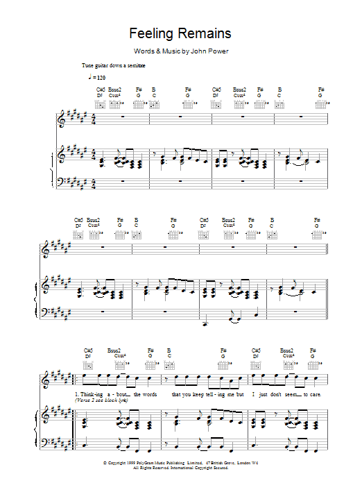 Download or print Cast Feeling Remains sheet music, chords and digital score arranged for Piano, Vocal & Guitar Chords. This Alternative score includes 8 page(s).