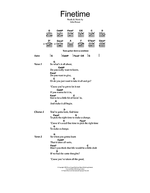 Download or print Cast Finetime sheet music, chords and digital score arranged for Guitar Chords/Lyrics. This Rock score includes 2 page(s).