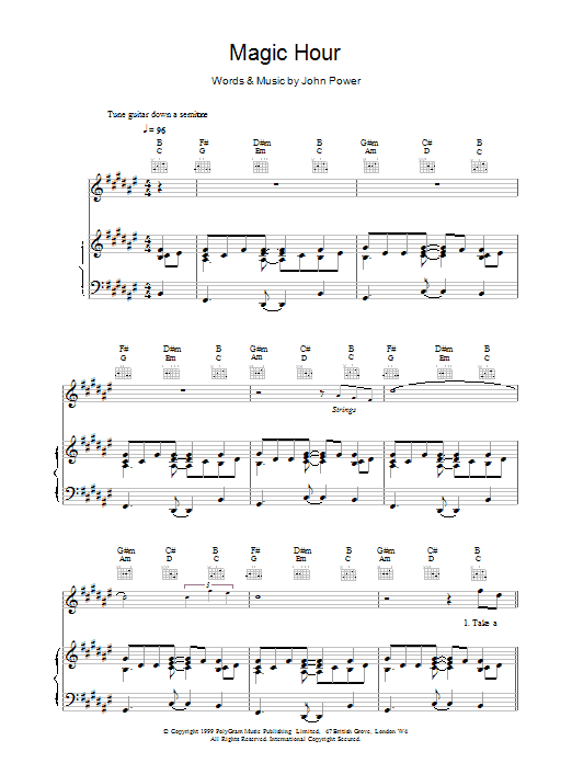 Download or print Cast Magic Hour sheet music, chords and digital score arranged for Piano, Vocal & Guitar Chords. This Alternative score includes 4 page(s).