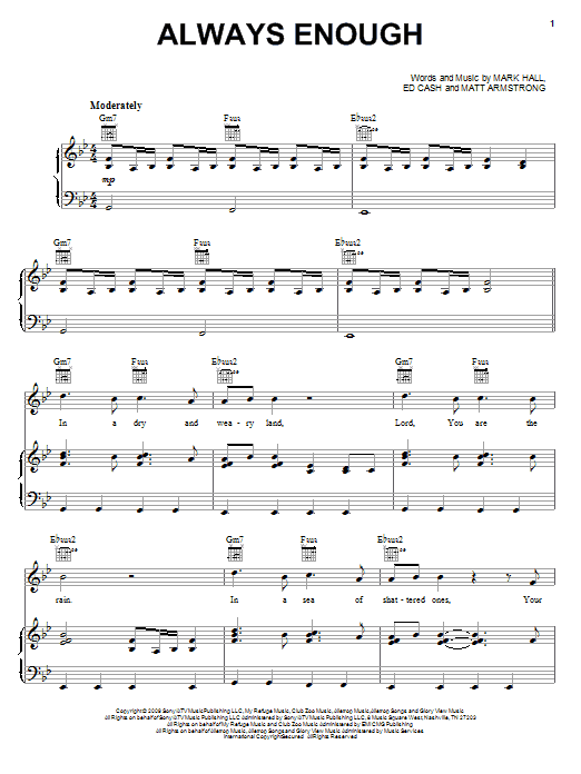Download or print Casting Crowns Always Enough sheet music, chords and digital score arranged for Piano, Vocal & Guitar Chords (Right-Hand Melody). This Christian score includes 7 page(s).
