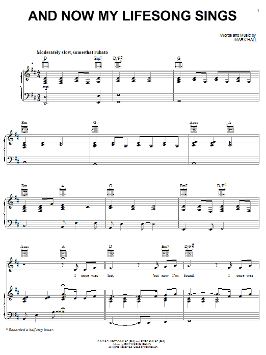 Download or print Casting Crowns And Now My Lifesong Sings sheet music, chords and digital score arranged for Piano, Vocal & Guitar Chords (Right-Hand Melody). This Christian score includes 5 page(s).