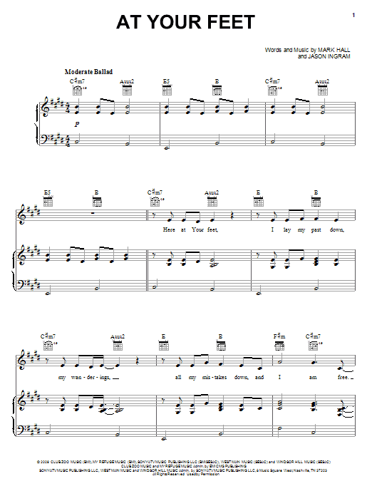 Download or print Casting Crowns At Your Feet sheet music, chords and digital score arranged for Easy Piano. This Pop score includes 5 page(s).