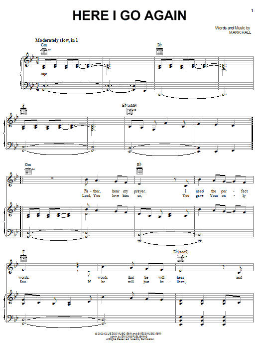 Download or print Casting Crowns Here I Go Again sheet music, chords and digital score arranged for Easy Piano. This Christian score includes 8 page(s).
