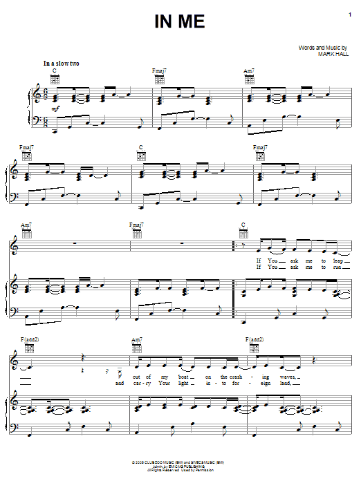 Download or print Casting Crowns In Me sheet music, chords and digital score arranged for Easy Piano. This Christian score includes 6 page(s).