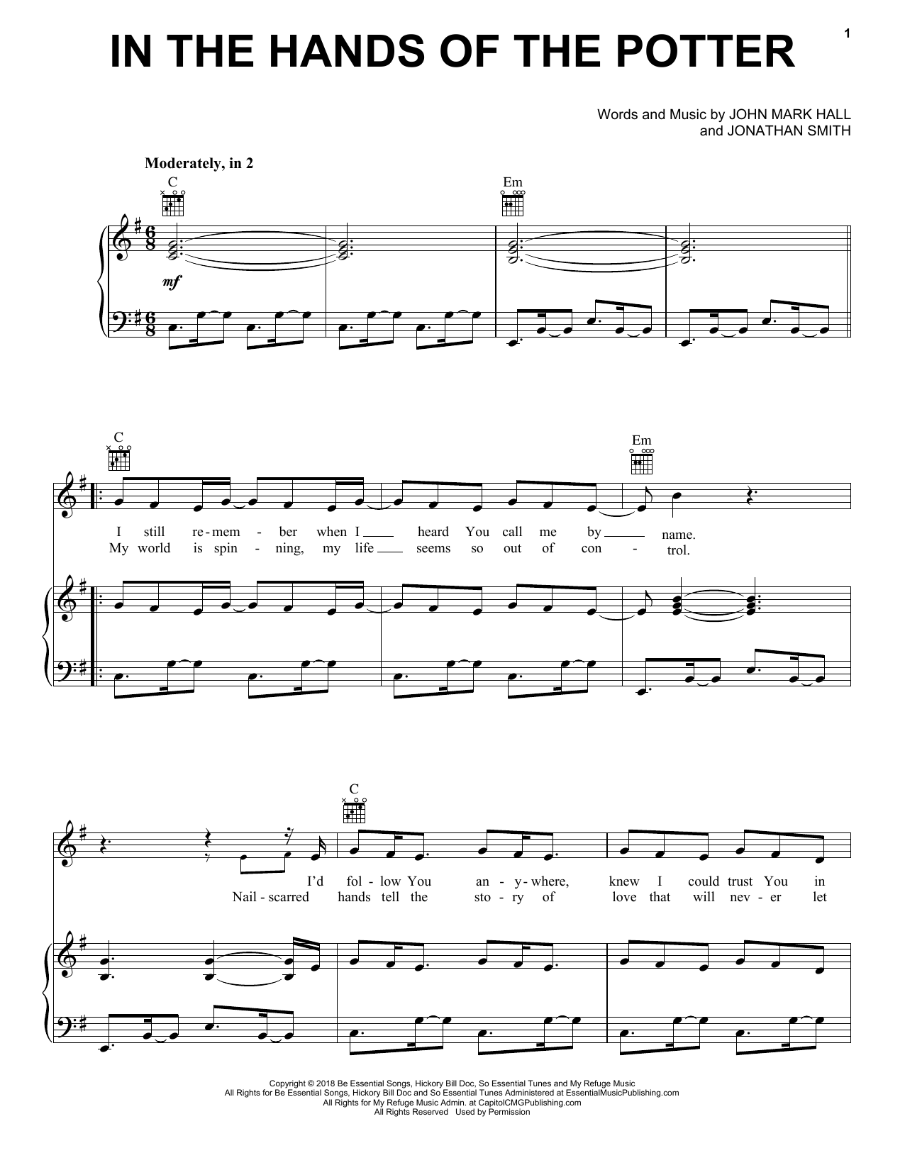 Download or print Casting Crowns In The Hands Of The Potter sheet music, chords and digital score arranged for Piano, Vocal & Guitar Chords (Right-Hand Melody). This Pop score includes 6 page(s).