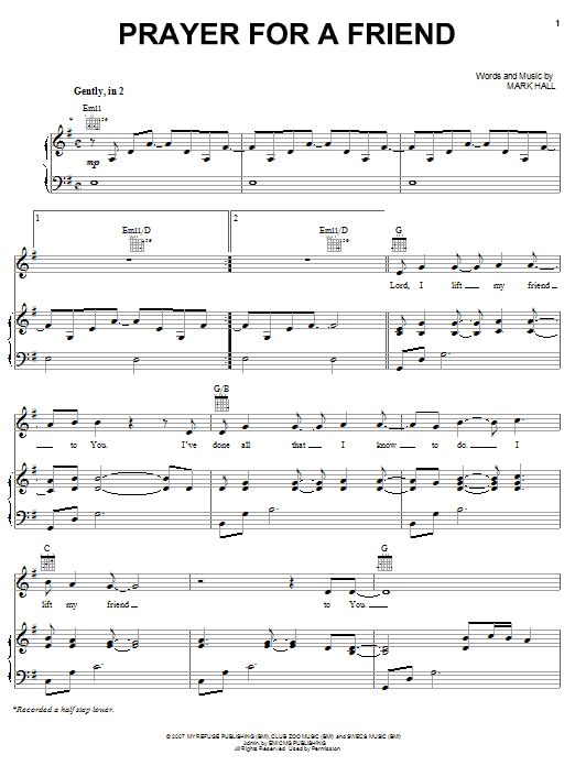 Download or print Casting Crowns Prayer For A Friend sheet music, chords and digital score arranged for Easy Piano. This Christian score includes 5 page(s).