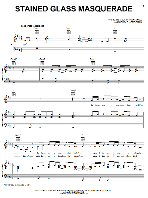 Download or print Casting Crowns Stained Glass Masquerade sheet music, chords and digital score arranged for Easy Piano. This Christian score includes 6 page(s).