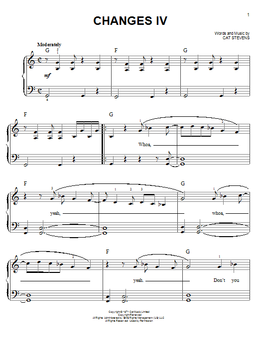 Download or print Cat Stevens Changes IV sheet music, chords and digital score arranged for Guitar Chords/Lyrics. This Pop score includes 3 page(s).
