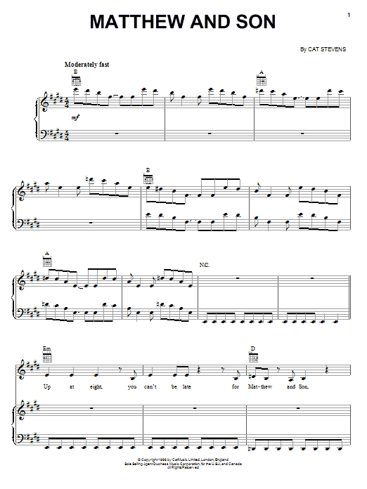 Download or print Cat Stevens Matthew And Son sheet music, chords and digital score arranged for Guitar Chords/Lyrics. This Pop score includes 2 page(s).