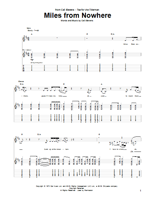 Download or print Cat Stevens Miles From Nowhere sheet music, chords and digital score arranged for Easy Piano. This Pop score includes 5 page(s).