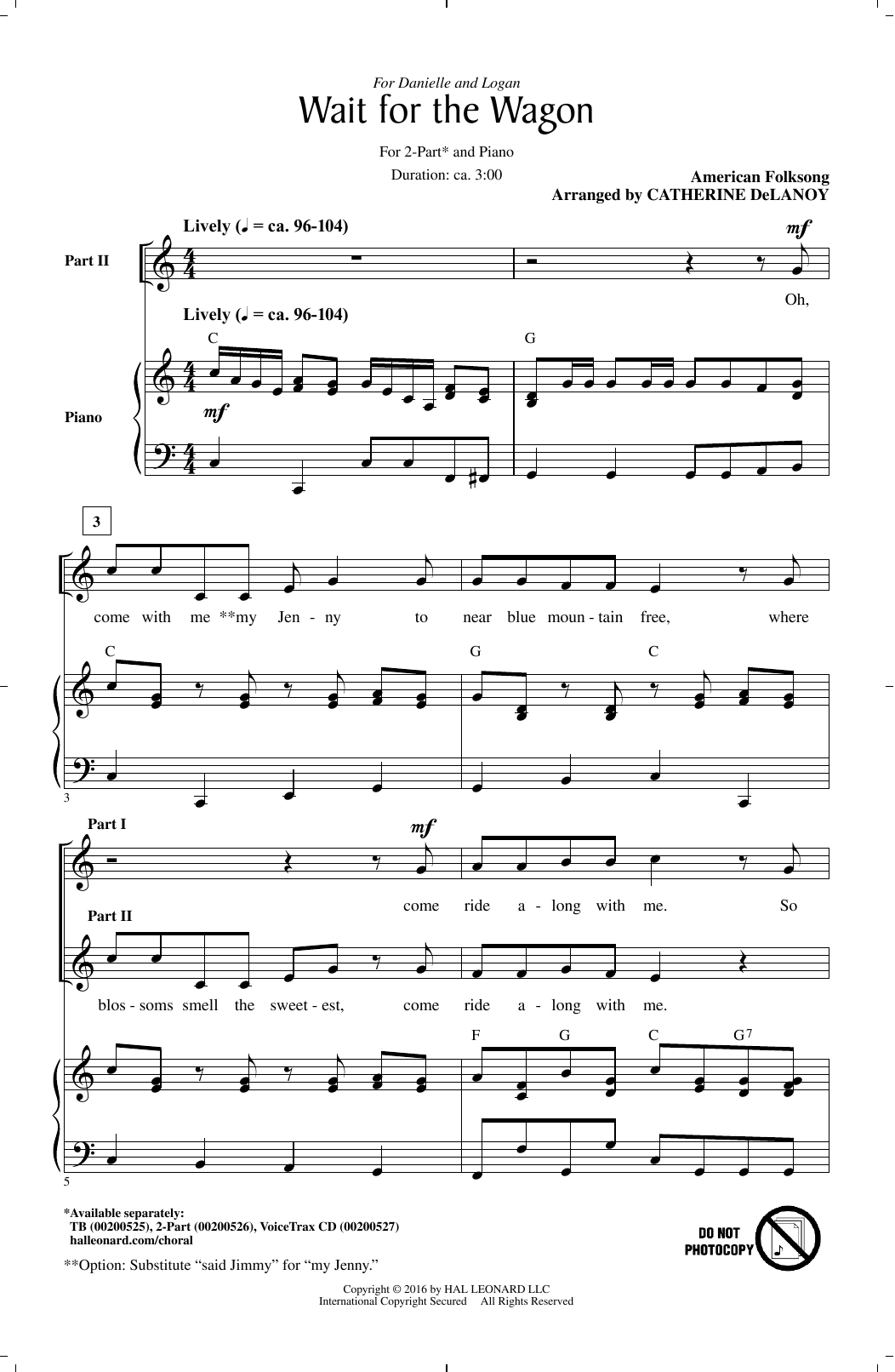 Download or print Catherine Delanoy Wait For The Wagon sheet music, chords and digital score arranged for TB Choir. This Concert score includes 10 page(s).