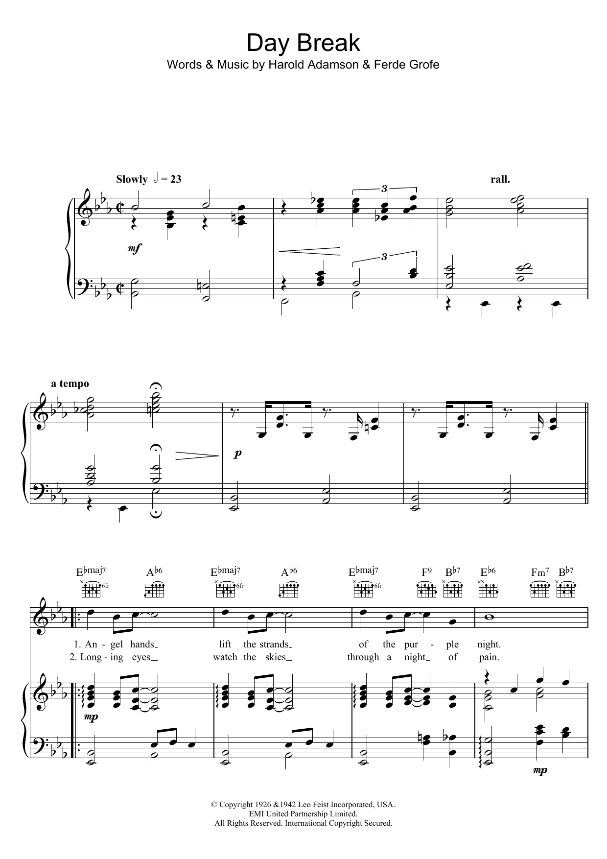 Download or print Cavan O'Connor Day Break sheet music, chords and digital score arranged for Piano, Vocal & Guitar Chords. This Standards score includes 4 page(s).